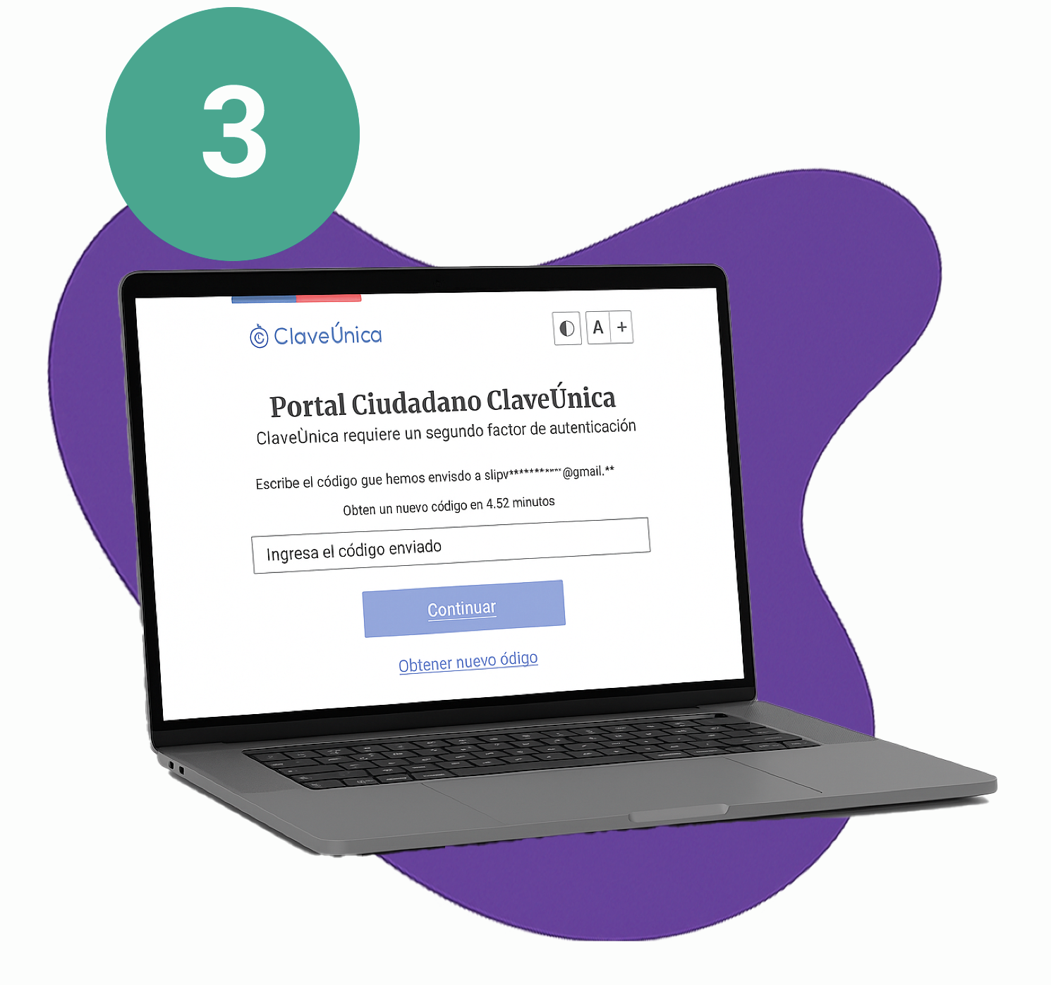 Te llegará un código temporal (contraseña de un solo uso) al correo electrónico que tienes registrado en ClaveÚnica